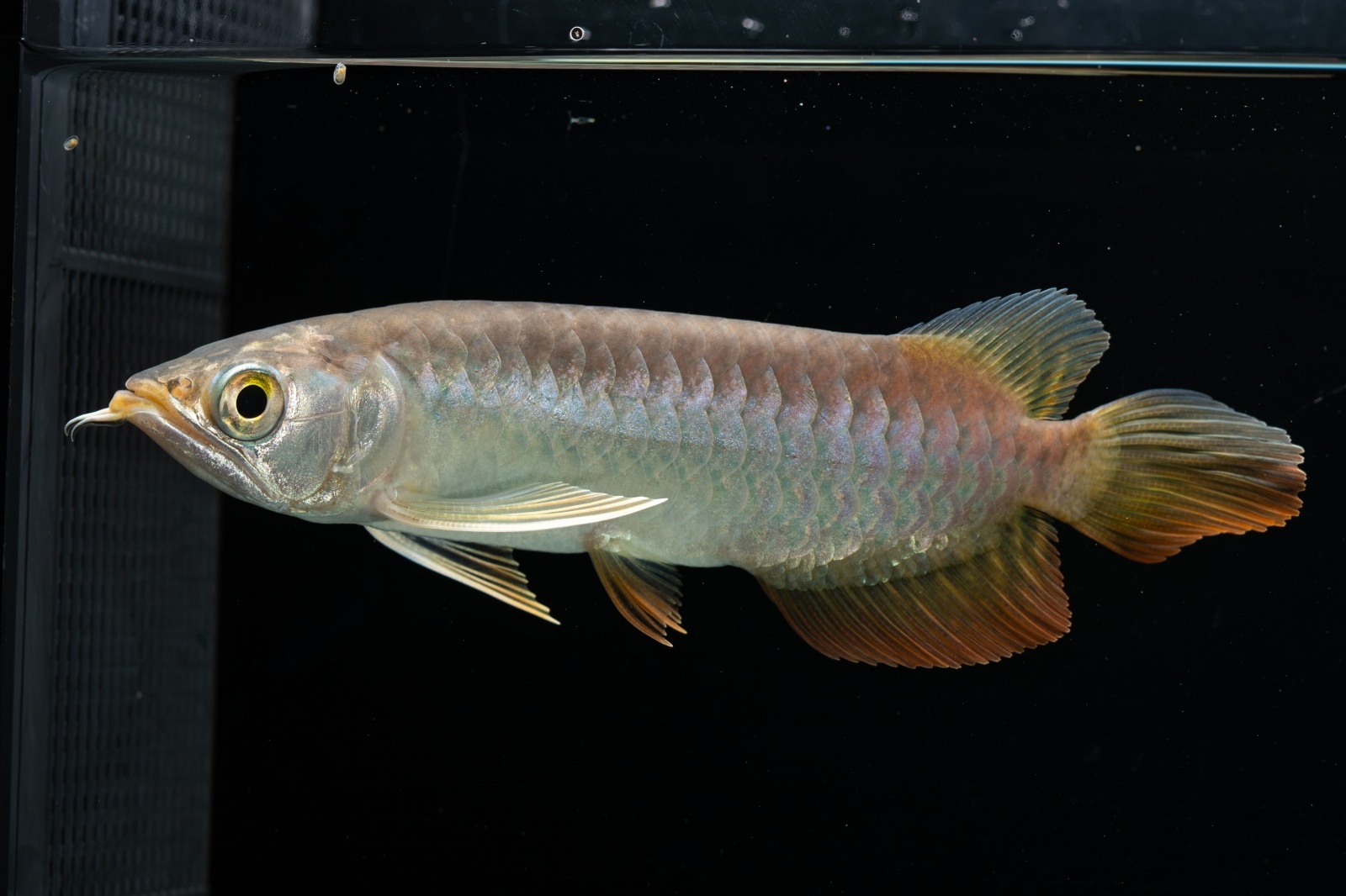 金質が濃くなり、背中が黒くなる昔ながらの人気のタイプです。長年アジアアロワナを飼育されてきたマニアさんには懐かしいタイプの紅尾金龍だと思います。