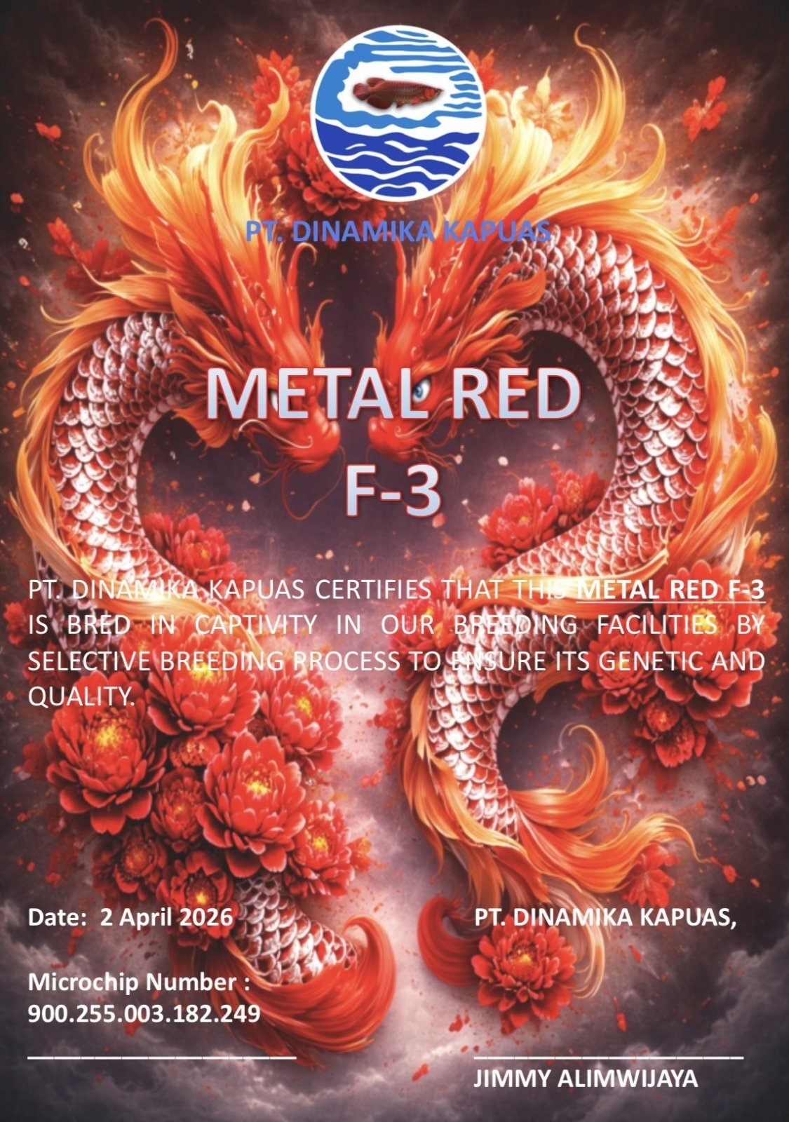 インドネシア、カリマンタン島ポンティアナにあるPT.ディナミカカプアスで養殖されたメタルレッド F3です。